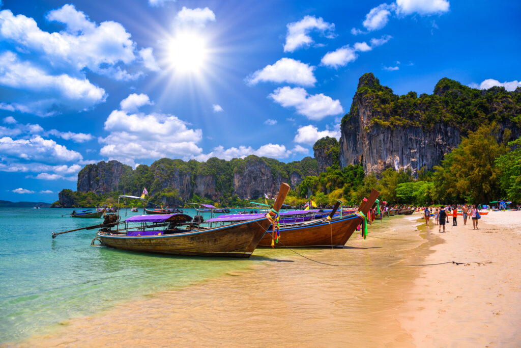 Accessible only by long-tail boat, Railay feels like a secret island. Limestone cliffs tower over turquoise water, and soft sands stretch beneath swaying palms. It’s the definition of wild romance, and your photos will look like they’re straight out of a movie.